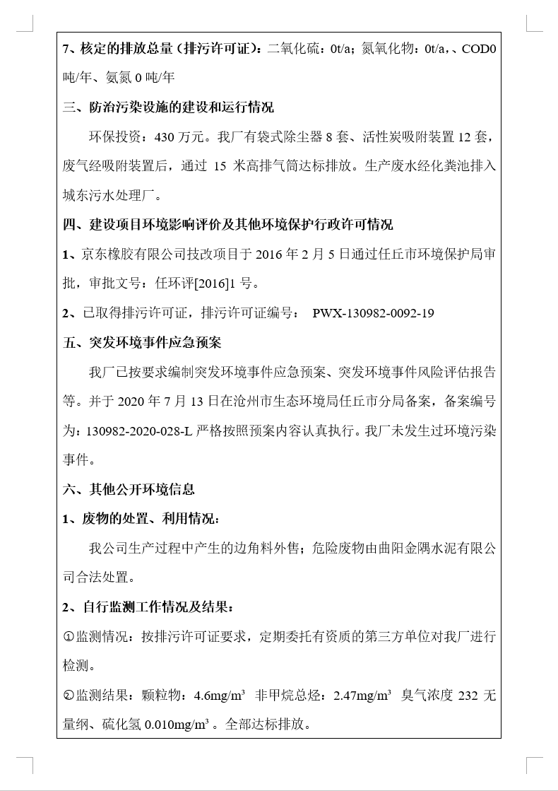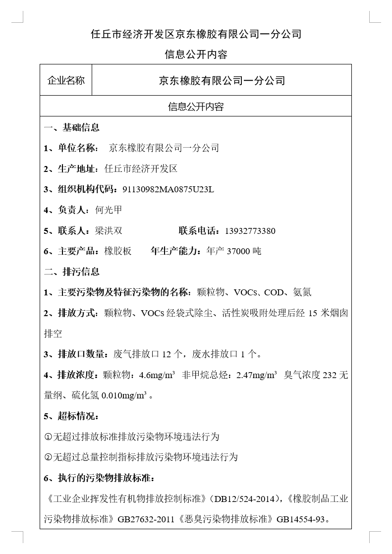 任丘市經濟開發區京東橡膠有限公司一分公司信息公開內容